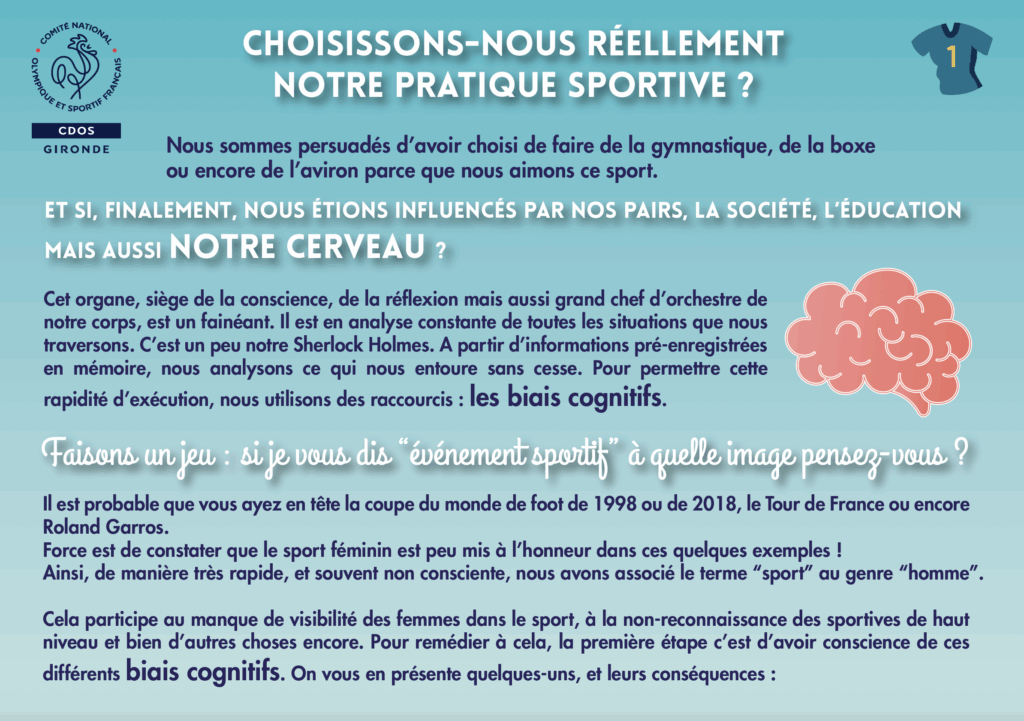 Cette exposition met en avant la questions des biais cognitifs et comment influencent-ils le choix de notre pratique sportive