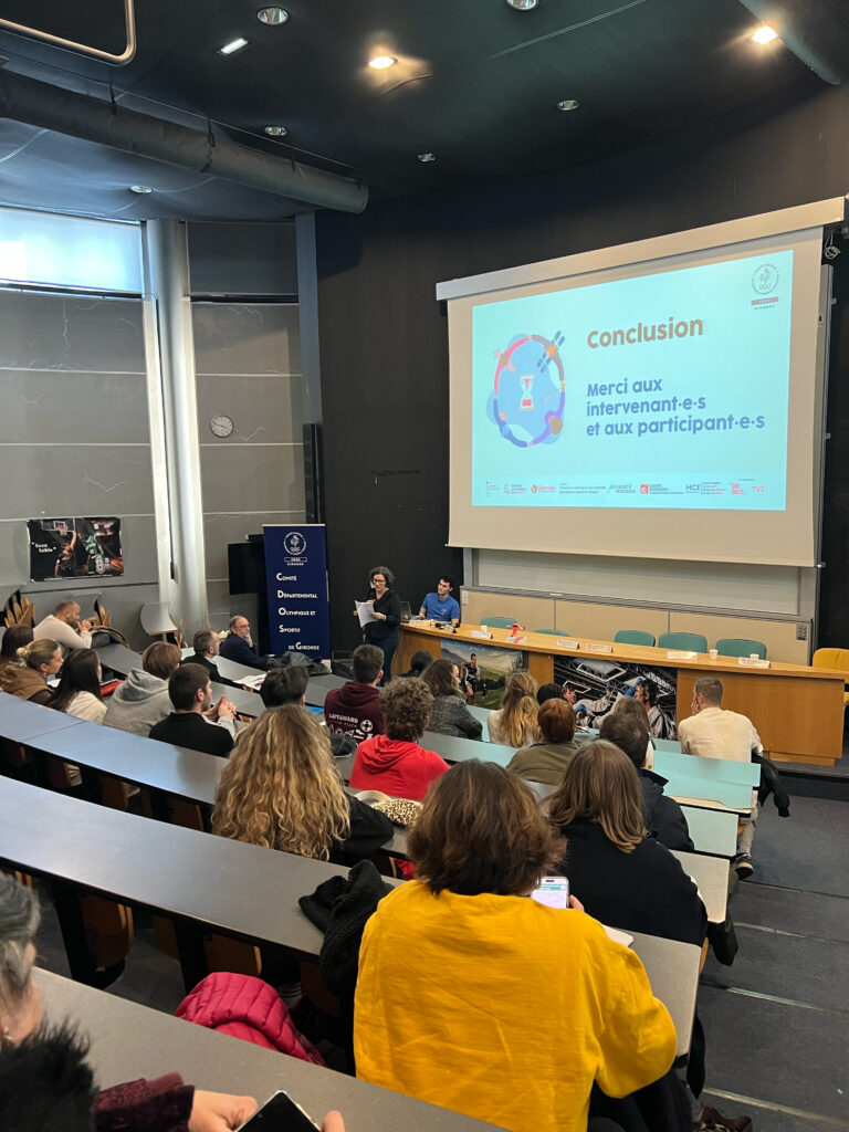 Une centaine de participant.e.s, sportifs.ives, encadrant·e·s, dirigeant·e·s de clubs et comités sportifs, éducateurs·rices, étudiant·e·s STAPS, Kiné, Ostéo, professionnel·l·e·s de santé, étaient présents pour ce colloque inédit. Ce fut une réussite !