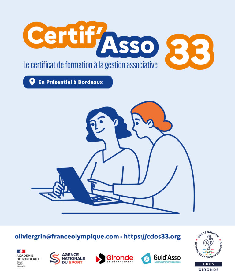 Le CDOS Gironde est habilité à former au Certif'asso, retrouvez le flyer explicatif et le programme en cliquant ici !