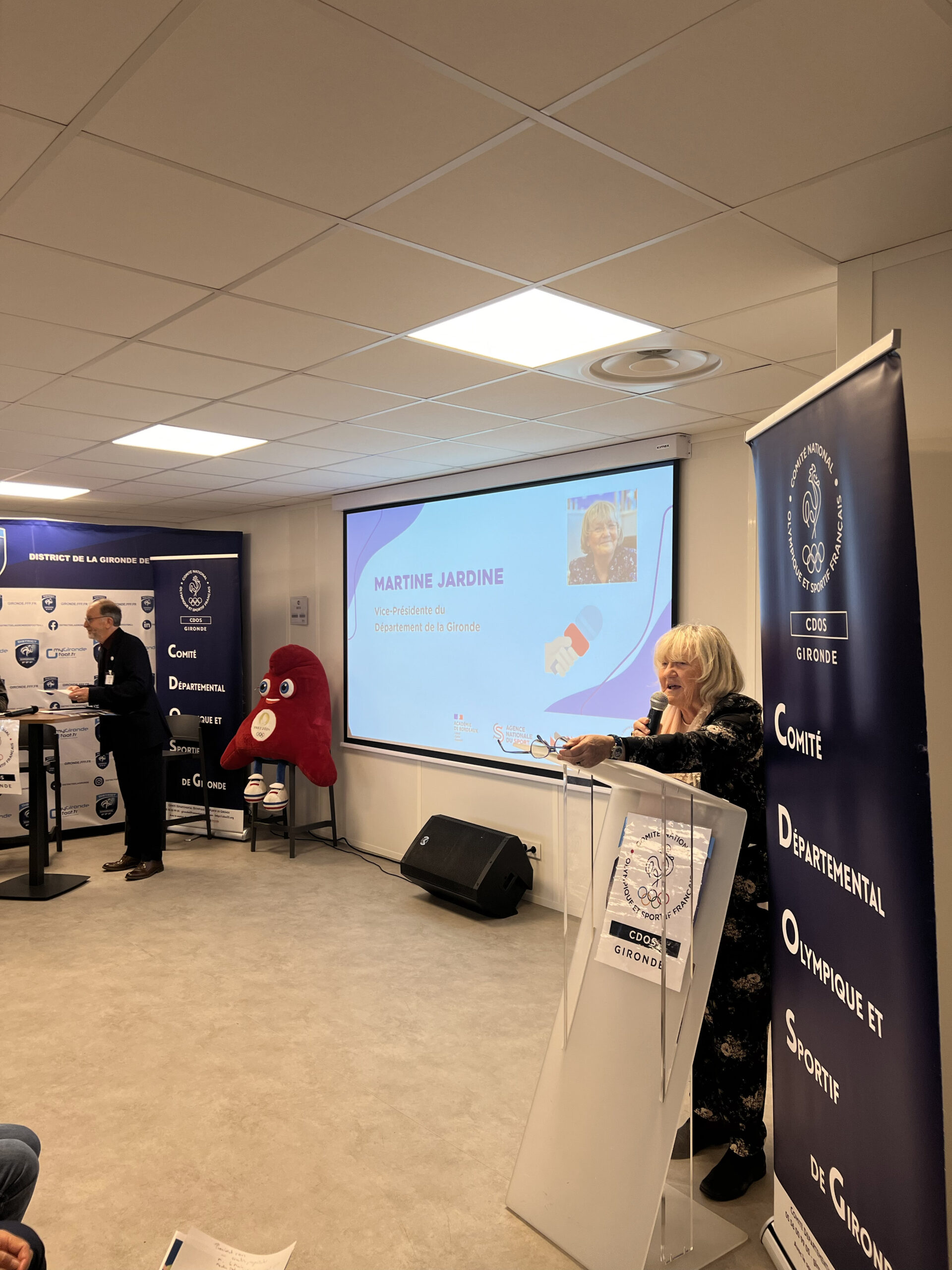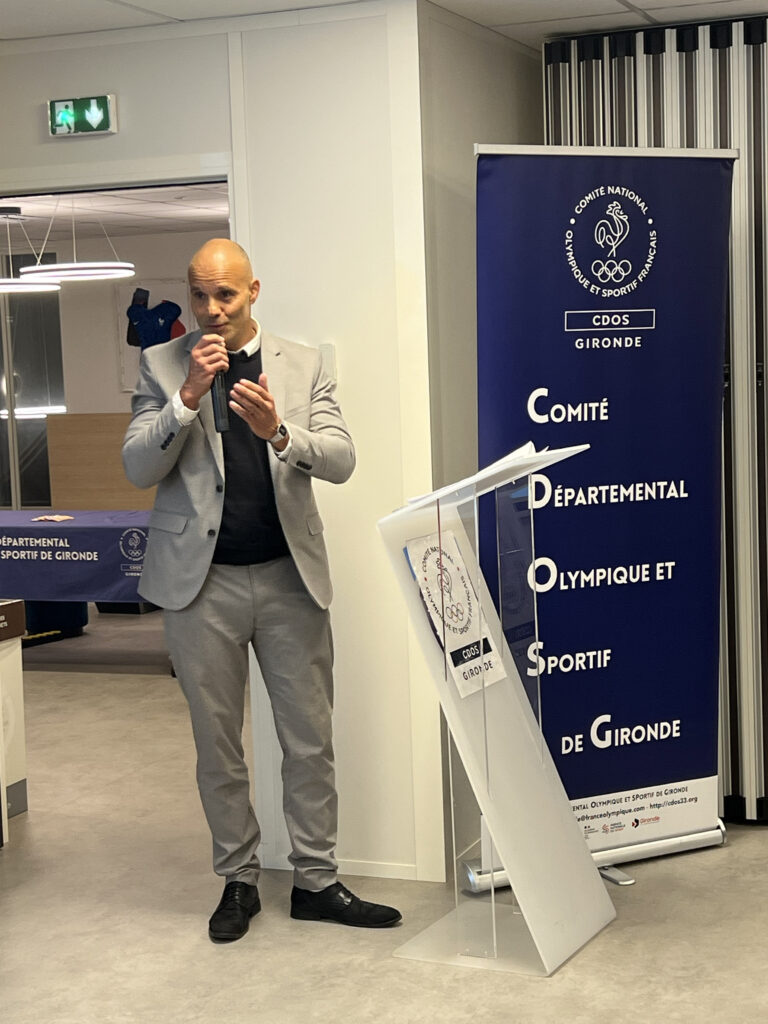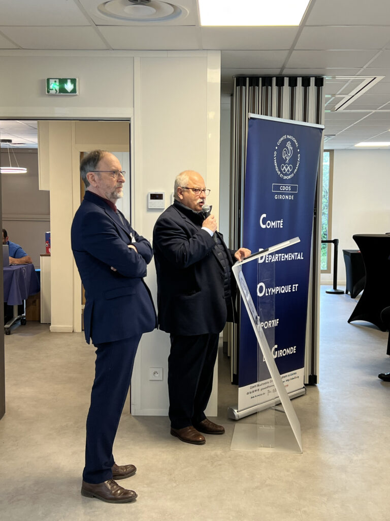 Merci à Jean-François Egron, Maire de Cenon ; Martine Jardiné, Vice-Présidente du Département de la Gironde ; Alain Courpron, Secrétaire Général du Comité Régional Olympique et Sportif NA, Guillaume Genoux, Chef du Service Départemental Jeunesse, Engagement et Sport de la Gironde et Catherine Brochard, Présidente d’honneur du CDOS Gironde, pour leurs présences et leurs interventions.